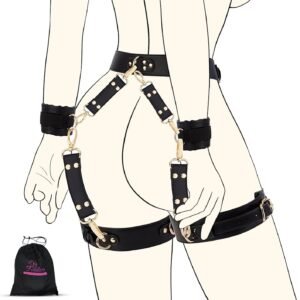 Bondage Restraints Kit – 6-Piece Adjustable BDSM Set with Handcuffs, Ankle & Thigh Cuffs, Blindfold, Waist Belt & Cross Strap